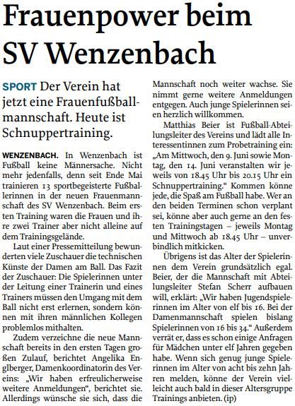 Frauenpower: Die Mittelbayerische Zeitung hat unserer Frauenmannschaft einen Artikel gewidmet:
