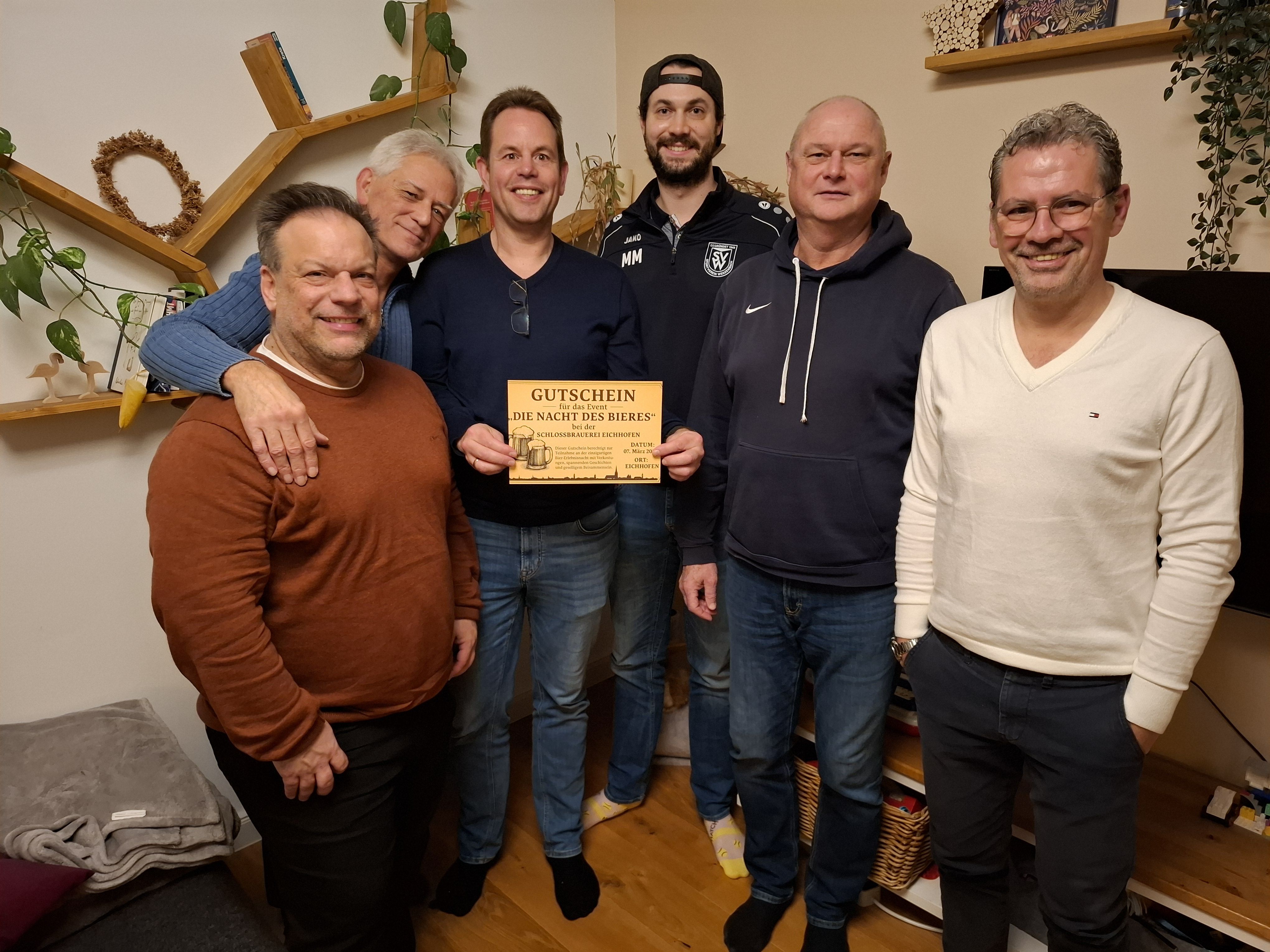 Kleines Präsent für viele aufopferungsvolle Jahre im Amt: Am Rande der ersten Sitzung der neuen Abteilungsleitung verabschiedete der neue Abteilungsleiter des SV Wenzenbach Tennis, Michael Mieslinger (3. von re.), die Vorgänger-Mannschaft.